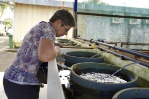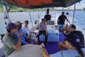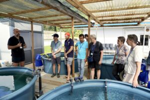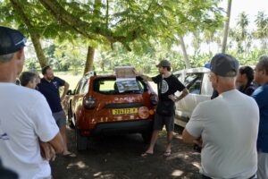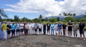 À l’occasion de la venue d’une délégation du CNRS Écologie et Environnement en Polynésie française, une visite officielle du site d’Atimaono s’est tenue le matin du vendredi 30 janvier. Cette visite a réuni de nombreux acteurs du territoire : des chercheurs du CRIOBE, de SECOPOL et du CIRAP, des représentants institutionnels tels que des membres de la mairie de Teva I Uta et de la DAF, ainsi que des membres d’associations comme ceux de l’A.M.E de Vahoata et du rāhui de Paparā.