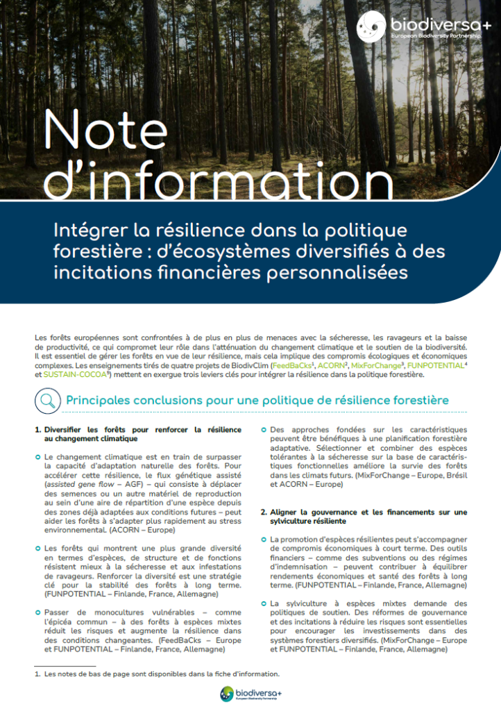 Nouveaux Policy Briefs de Biodiversa+ : sols, forêts et solutions fondées sur la nature pour renforcer la résilience climatique